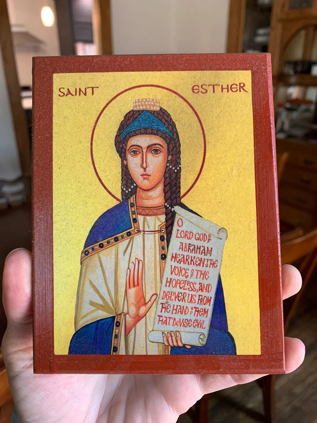 Ícono de Santa Ester, icono ortodoxo griego hecho a mano de Santa Ester la Reina, placa de madera para colgar en la pared con arte bizantino católico, regalo religioso