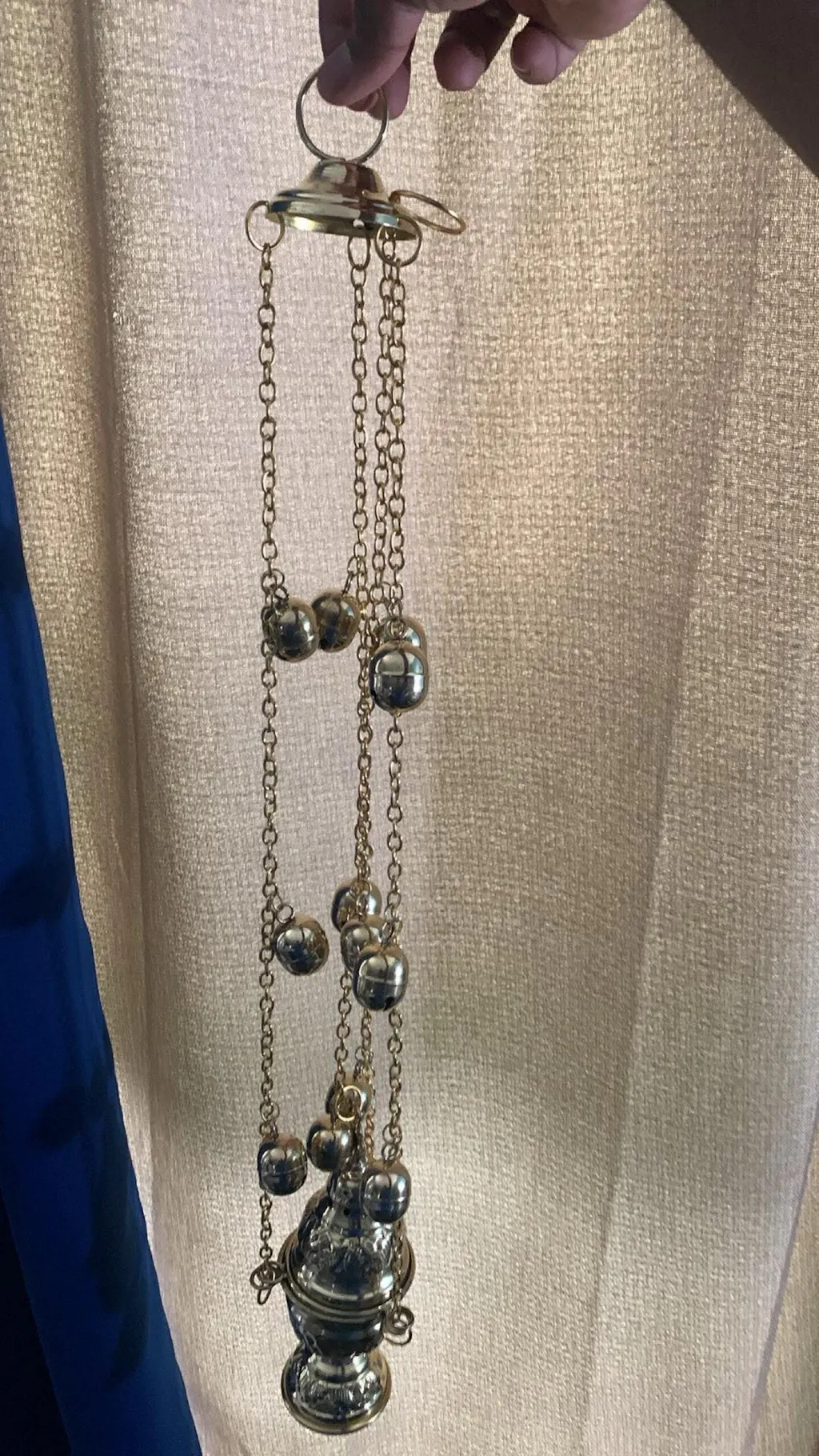 Christian Hanging Brass Resin Incense Burner, Greek Orthodox Thurible Incense holder, Metal Byzantine Censer Perfume burner, religious gift - Charcoal Burner