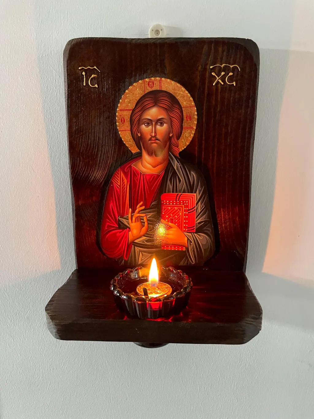 Christian Iconostasis with Jesus Christ, Handmade Mount Athos Orthodox shrine with Our Lord,Byzantine altar wall hanging wood plaque - Altar Shrine